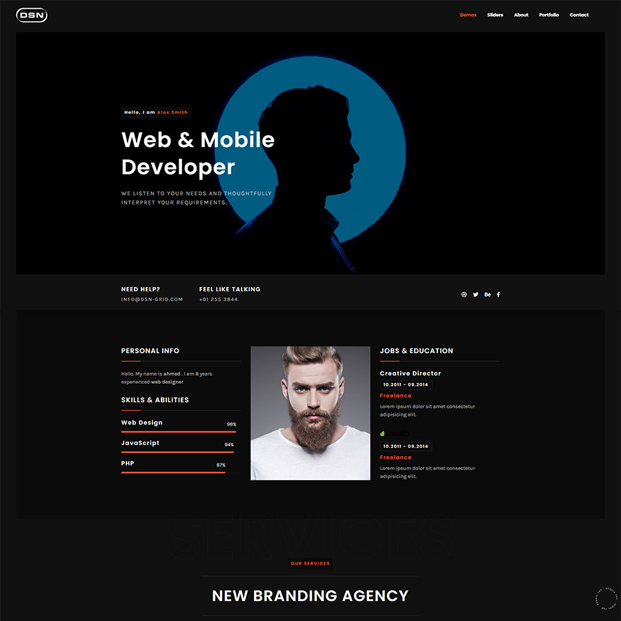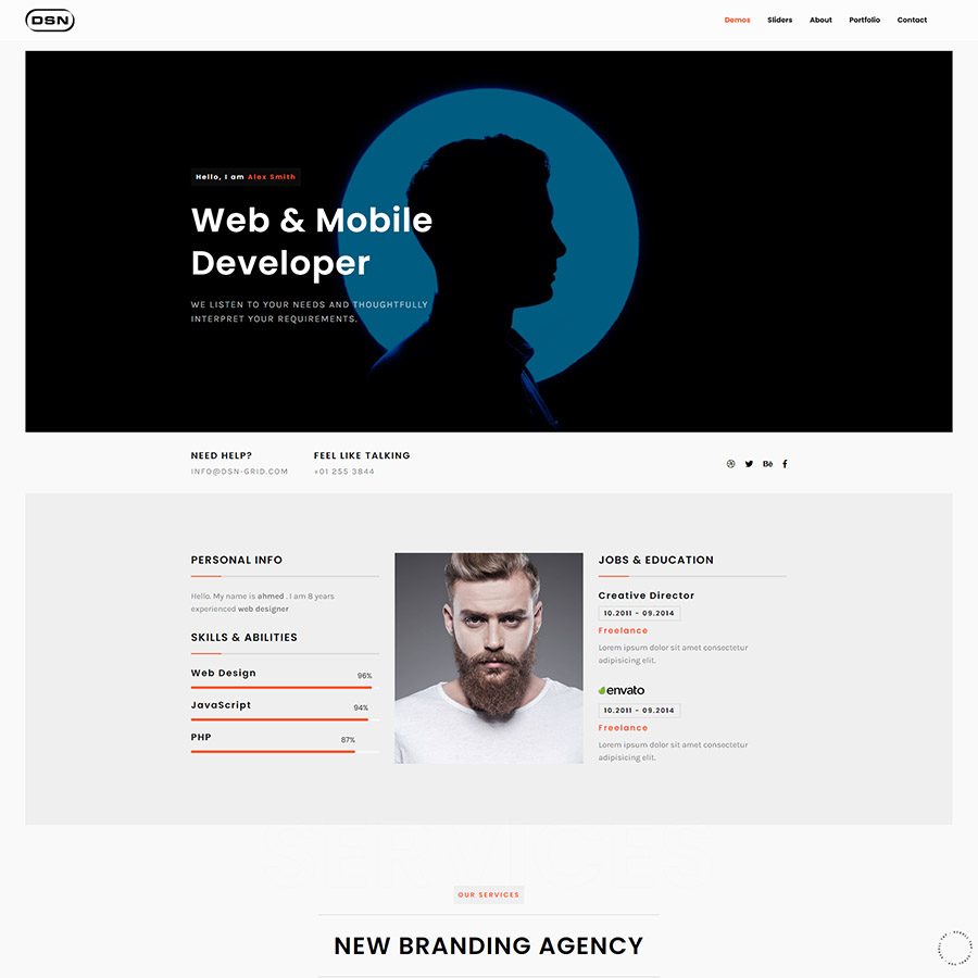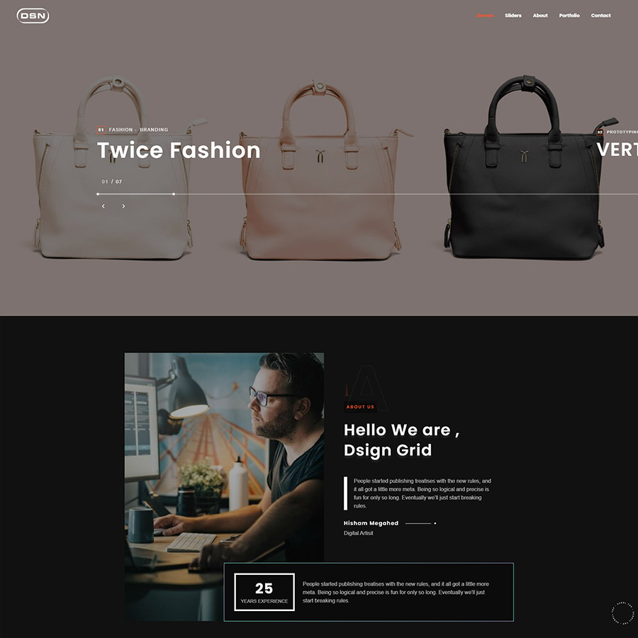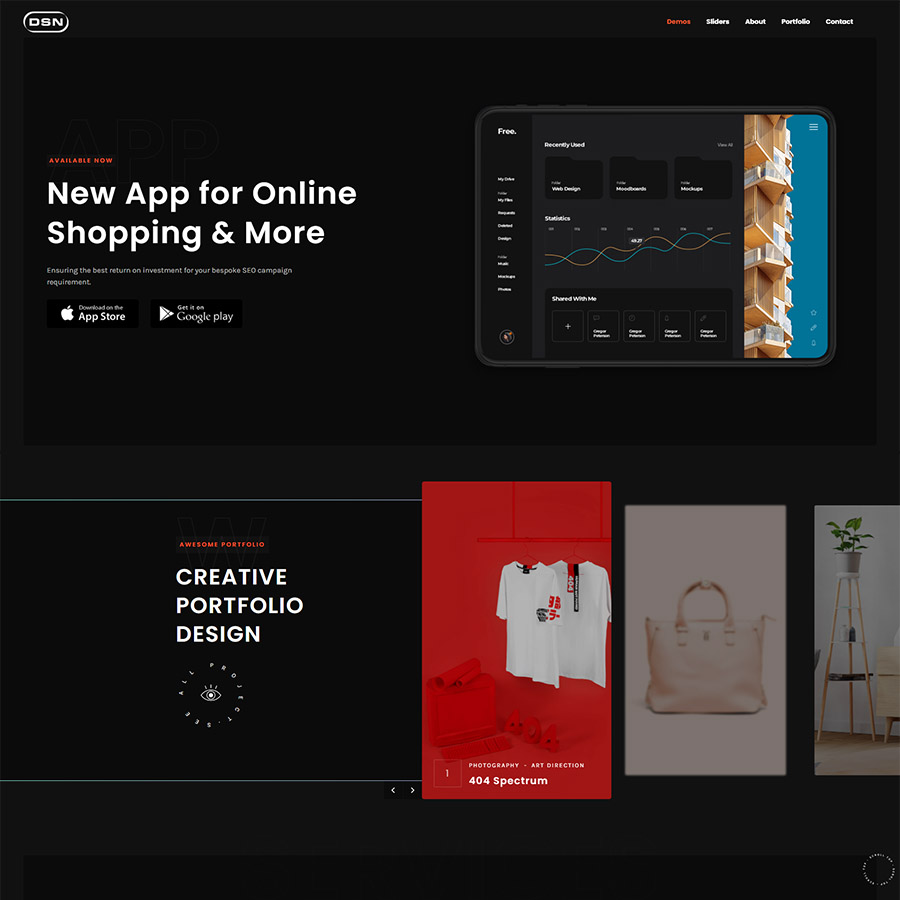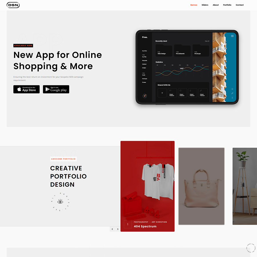 DSN is a new portfolio concept for creative agencies and freelancers. Graphic designers, illustrators, photographers or any kind of creative is now able to create a quick and easy portfolio to showcase their work with a distinctive and creative touch.